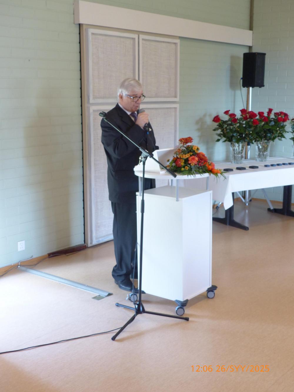 Puheenjohtaja Timo Laine tervehdysanat.