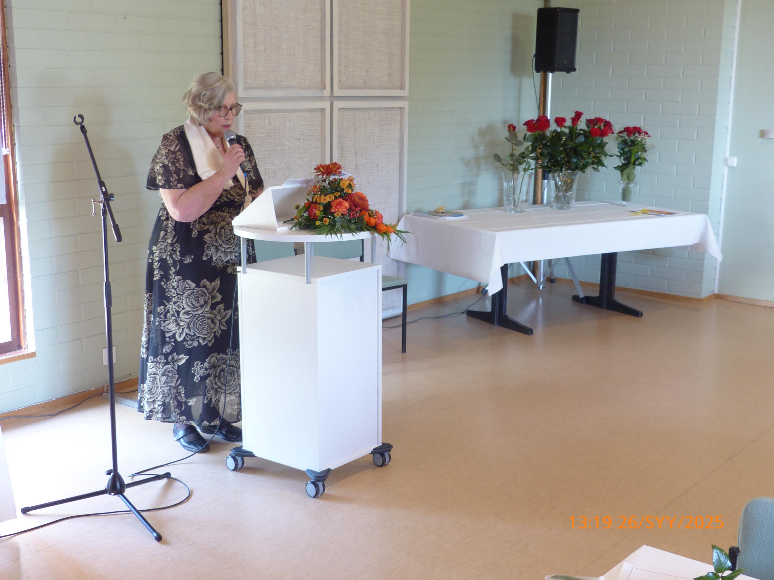 Historiikin jälkeen Kirsi Puntalo esitti runomuotoisen yhteenvedon yhdistyksen toiminnasta. Runo kiteytti huumorilla ja lämmöllä sen, mikä tekee meistä ainutlaatuisen yhteisön.