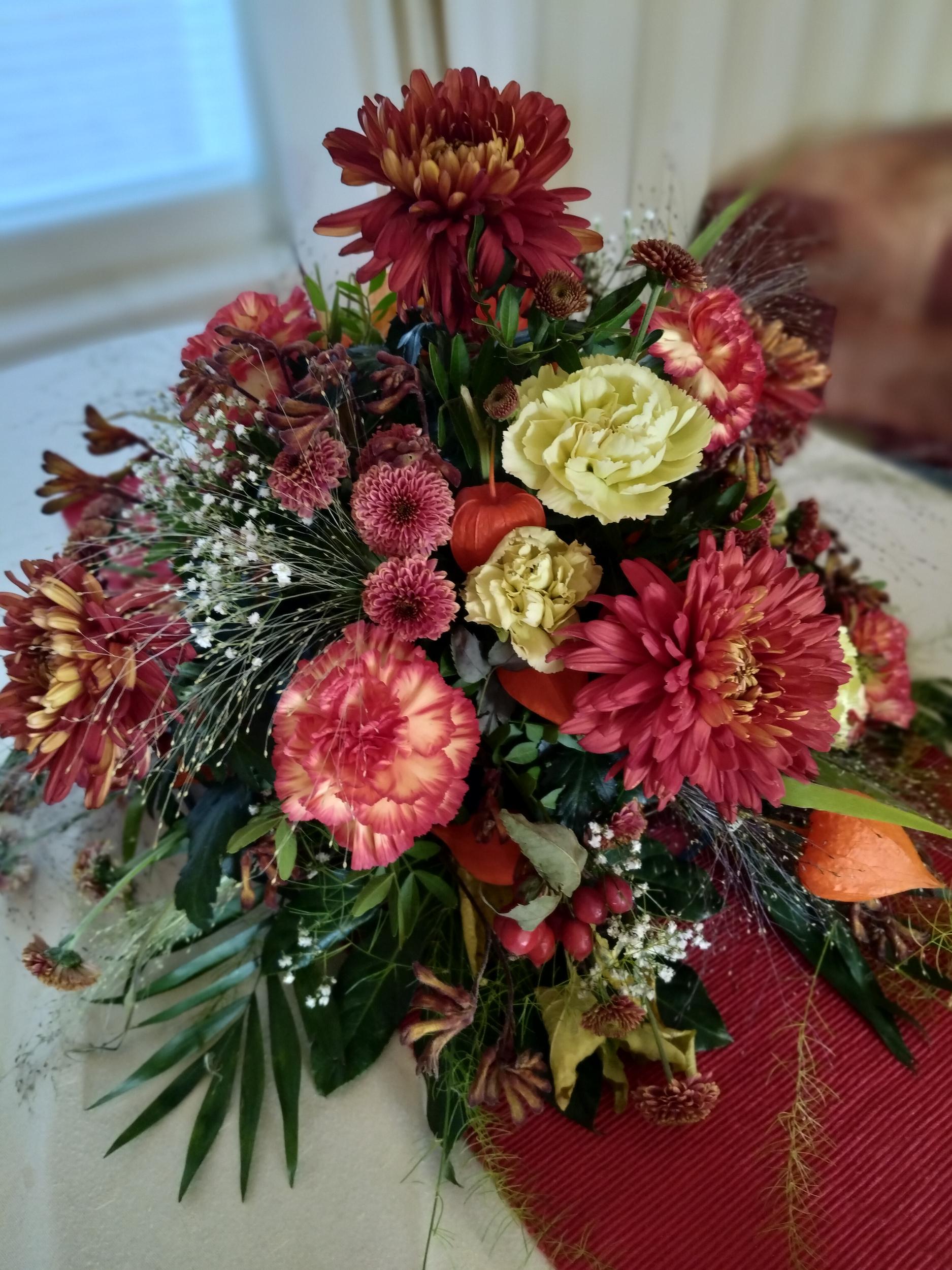 Juhlatalon kukat ovat Mouhijärven Kukkasidonta Oy:n tekemät