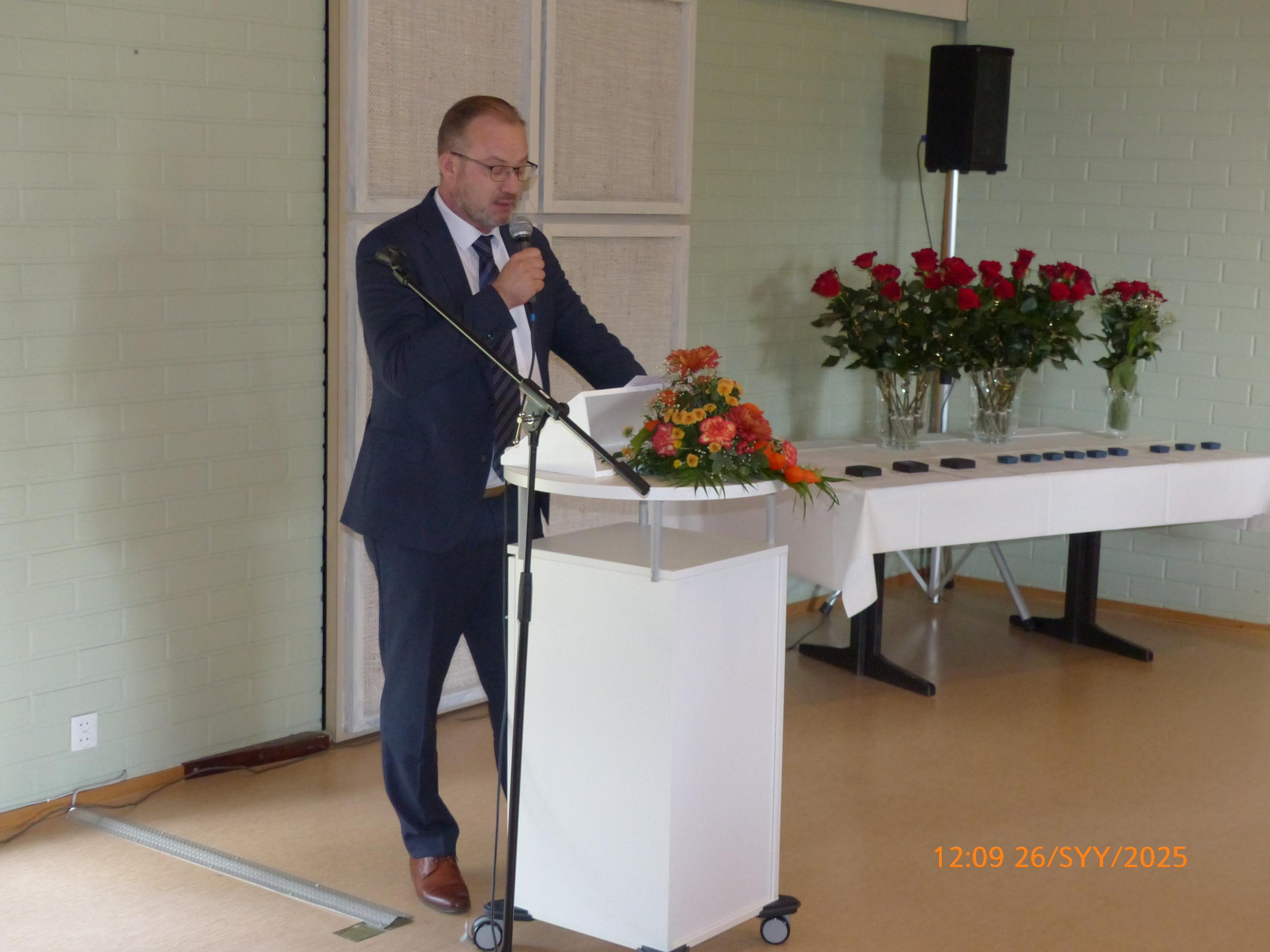 Puheenjohtaja Timo Laine tervehdysanat.