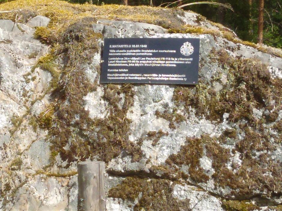 Matti Soini kertomassa Mielolan muistomerkillä 5.6.2018 lentokoneen putoamishistooriaa.