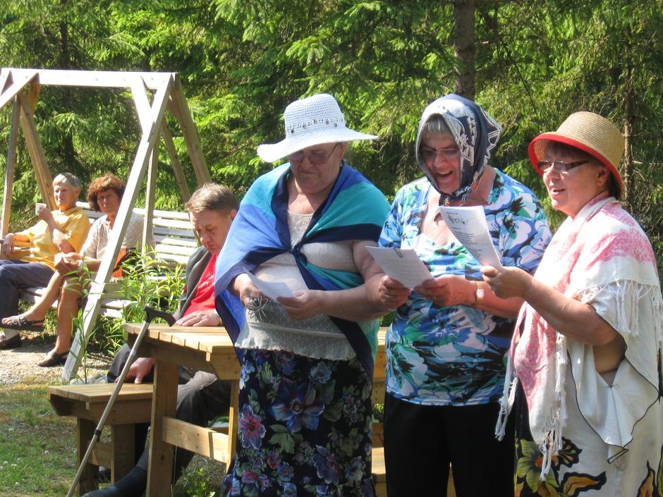 Kesäjuhla Mikkoloiden mökillä Horniossa, jossa naistrio esiintyi