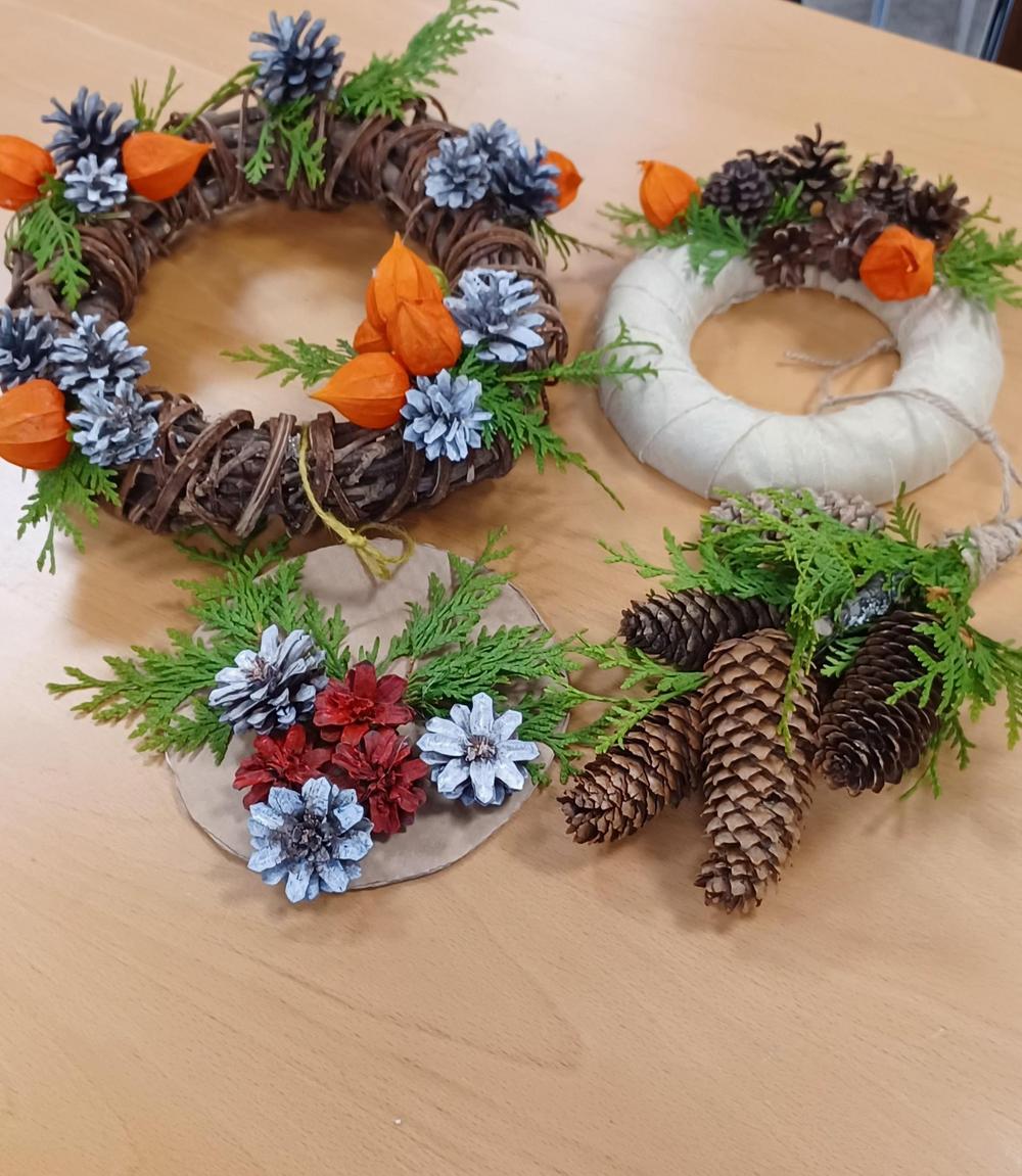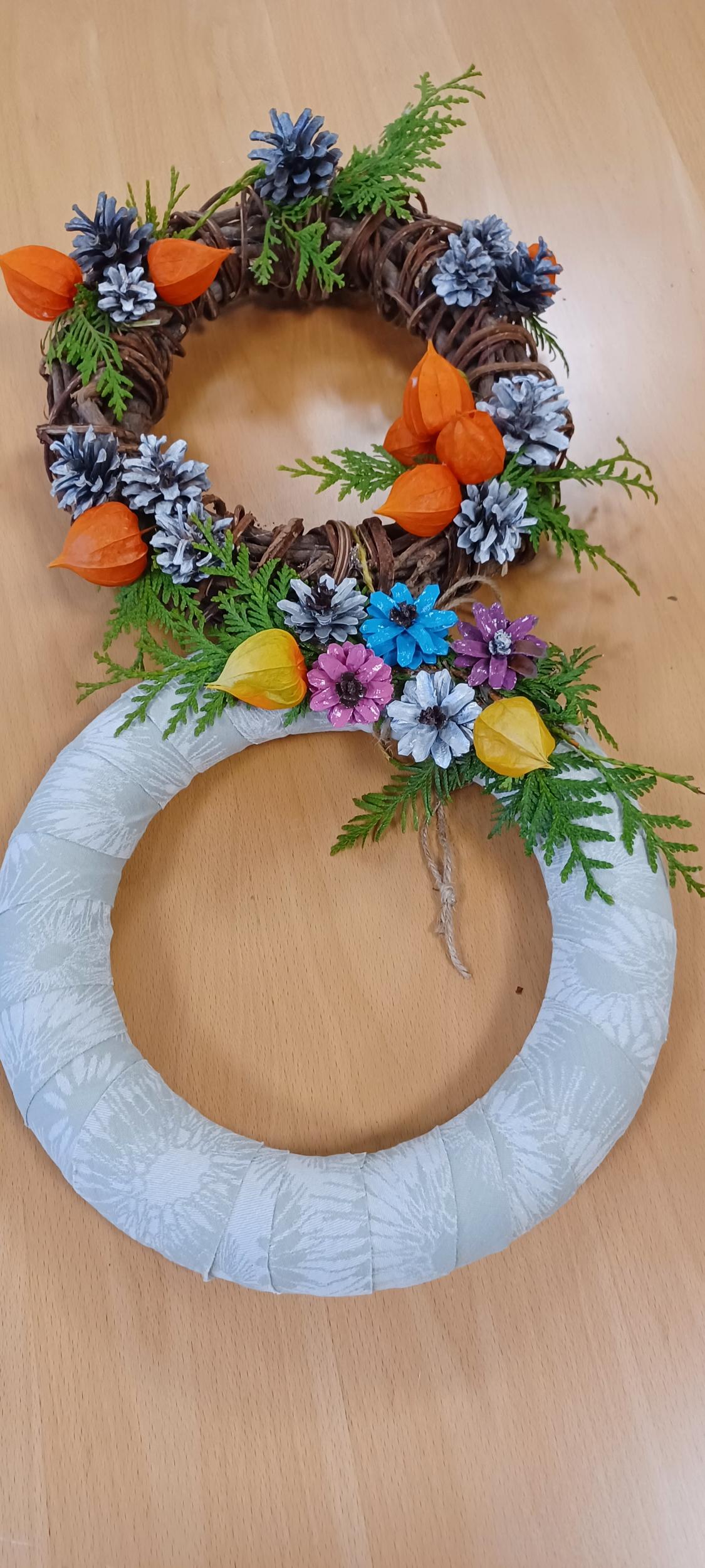 Katja Kuivanen ohjasi korttien askartelua ja Meria Mäkinen samalla koronapassin asennusta puhelimeen.