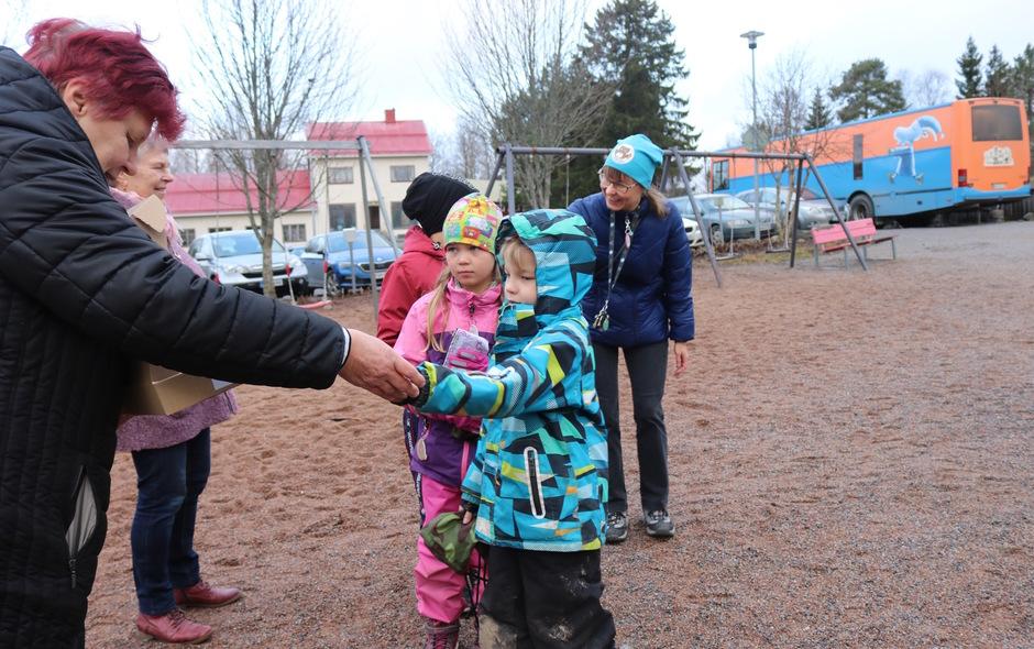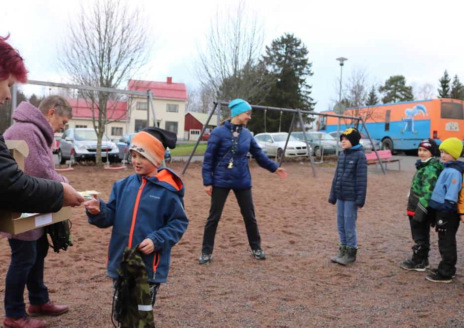 Mouhijärven Eläkkeensaajat lahjoittivat 4.11.2020 kirjastokasseja Häijään ja Uotsolan koulujen ekaluokkalaisille. Kassit on tehnyt Anja Hirvelä ja kuvat on ottanut Pauliina Vilenius.