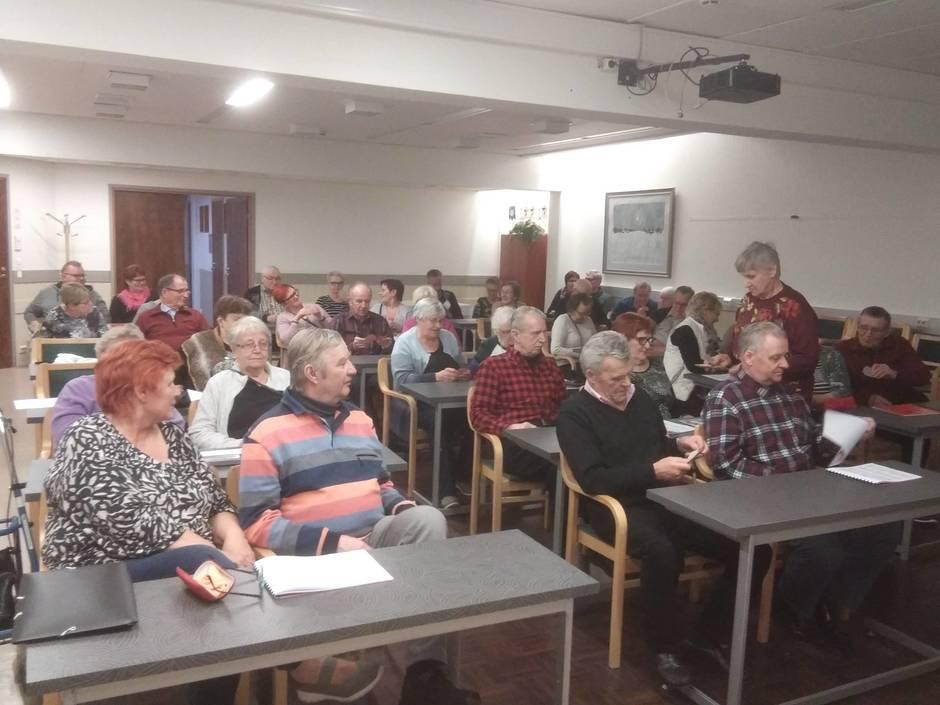 Kevätkokous 27.3.2019. Salon Pentti tarjosi kakkaukahvit 90-vuotisjuhlan kunniaksi. Jäseniä oli paikalla 35.