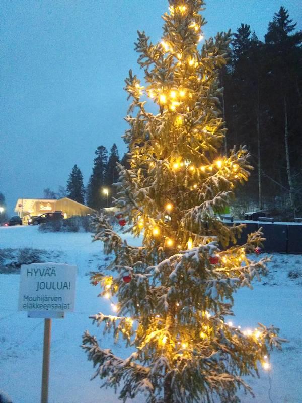 Eläkkeensaajien joulukuusi Mouhijärven torilla. Kuusen kuvasi Ritva Mikkola.