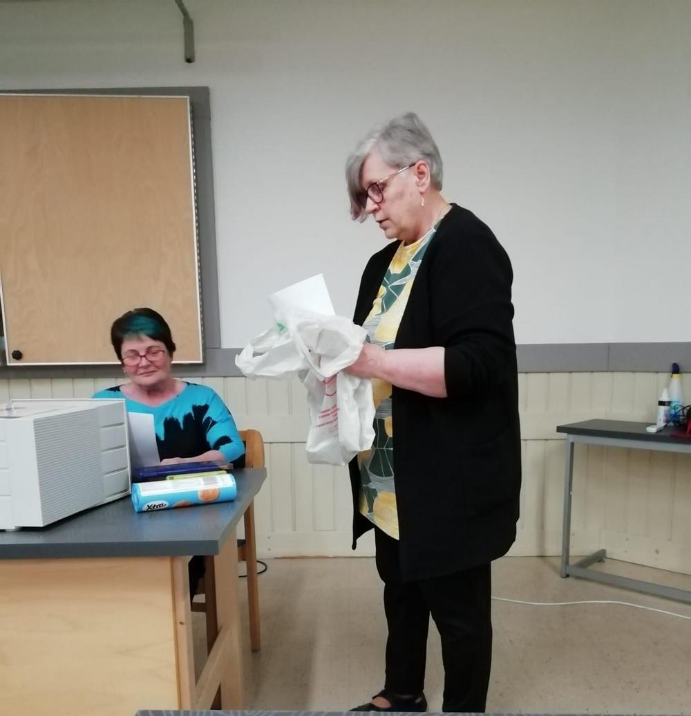 Järjetötuvalla Elsankamari 12.2.2024. Aiheenna oli vanhojen tavaroiden tunnistus ja käyttö. Hilkka Huitula oli tuonut kuparipannun ja itse tekemänsä upean pienen korkokengän. Heikki Uusinoika toi keritisimiä, aisakellon , lehmän- ja poronkellot ja soitteli niitä meille. Kahvin jälkeen pelasimme vielä Bingoa.