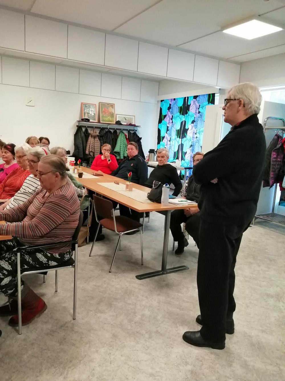 Jäsentapaaminen 29.1. 2024 Järjestötuvalla. Mauri Tuominen kertoi Peetusta ym. ajankohtaisista asioista.