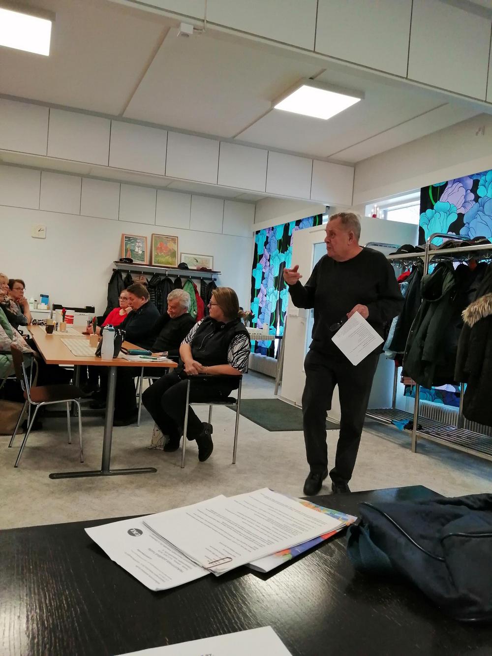 Jäsentapaaminen 29.1. 2024 Järjestötuvalla. Mauri Tuominen kertoi Peetusta ym. ajankohtaisista asioista.