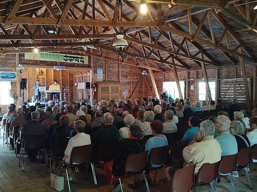 Väkeä saapui paikalle hiljalleen, ja pian sali täyttyi iloisesta puheen sorinasta