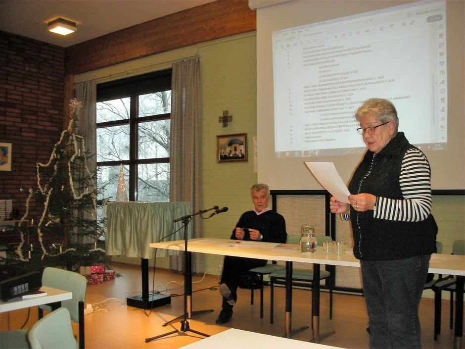 Piirikokous Mouhijärven Seurakuntakodilla 27.11.2018. Pirkko Oksa avasi kokouksen.