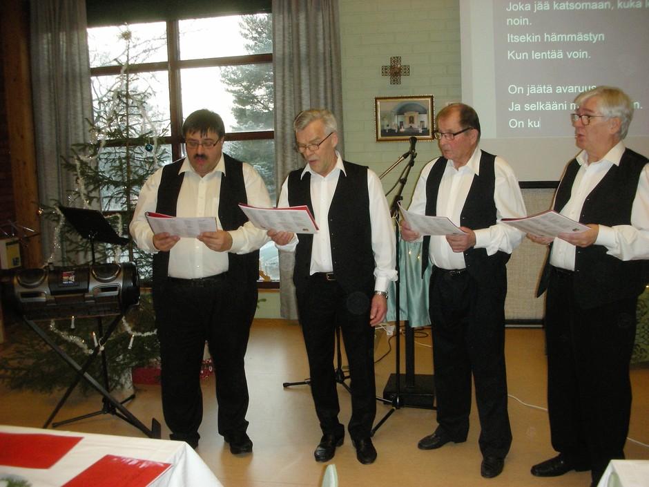 Pikkujoulu 28.11. 2018 Muuhijärven Seurakuntakodilla. Mouhijärven kappeliseurakunnnan pappi Lasse Hautala aloitti tilaisuuden kiittämällä siitä että olimme runsalukuisina( 91 henkilöä) paikalla ja ruokarukouksen jälkeen nautimme juhlapöydän antimista. Ohjelman esittäjäninä oli mm. Ismo Korkee ja Multakurkkujen pienennettty versio, sekä Ritva Mikkola ja Kaisu Hakala.